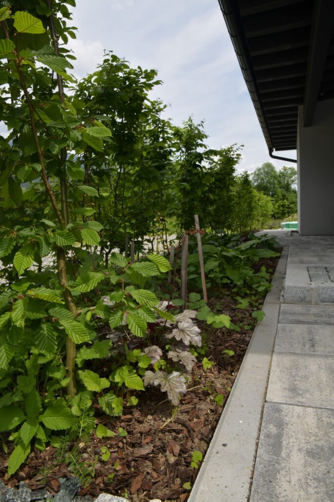 Die Eheleute wünschten sich seit 2017 einen Zweitwohnsitz in Kärnten. Schlussendlich erfüllten sie sich diesen langjährigen Wunsch mit dem Kauf eines Baugrundstückes in Untervellach bei Hermagor. Dort sollte rund um den Neubau ein grüner, wenig, gießintensiver, pflegeleichter, blühender, eleganter und charakteristischer Außenbereich entstehen.
