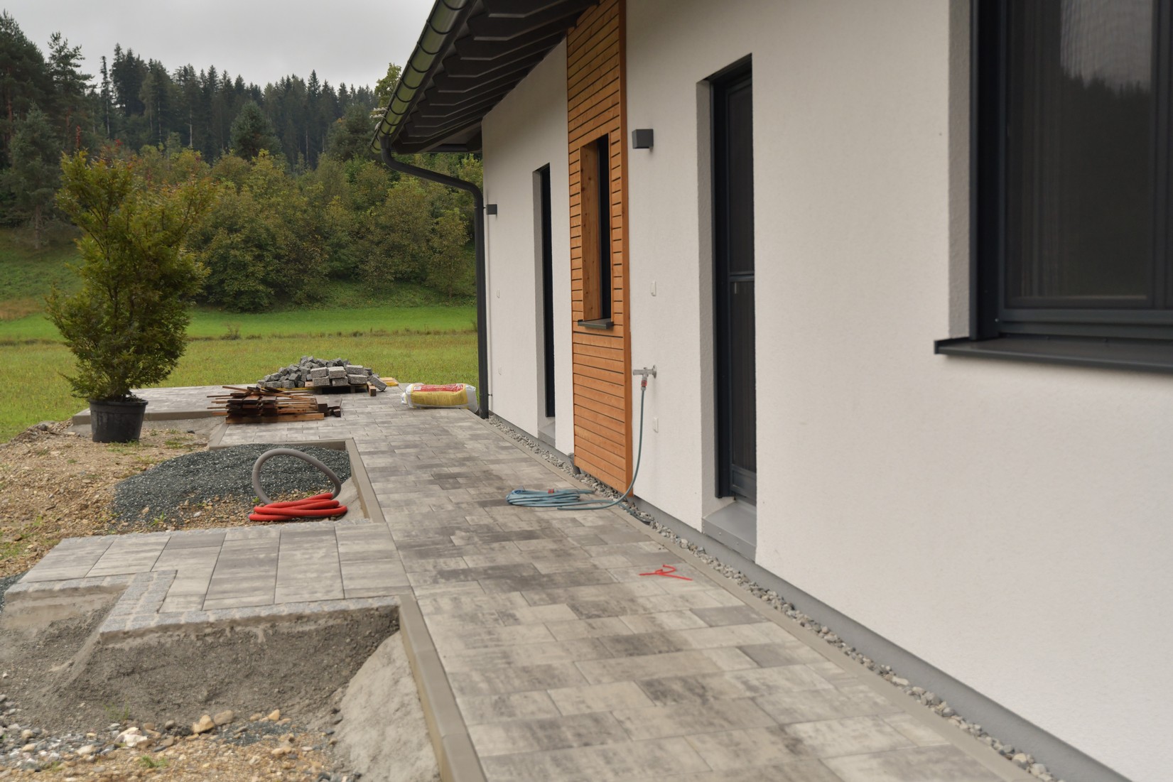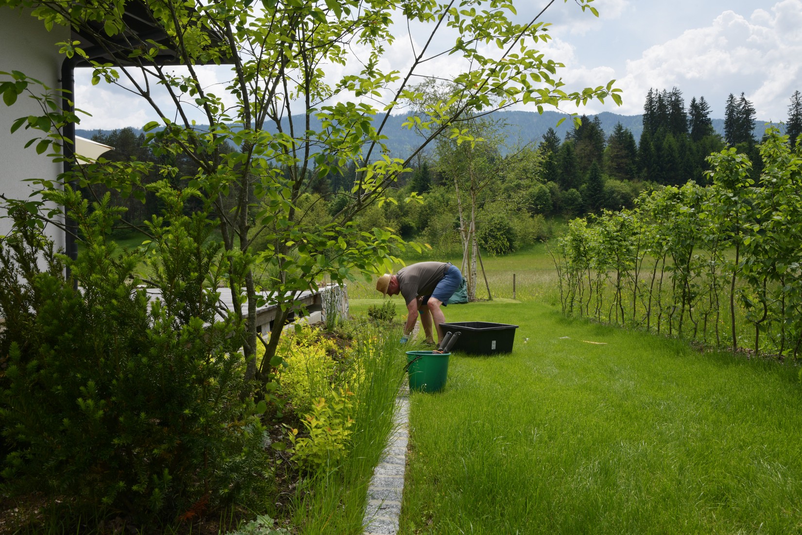 Die Eheleute wünschten sich seit 2017 einen Zweitwohnsitz in Kärnten. Schlussendlich erfüllten sie sich diesen langjährigen Wunsch mit dem Kauf eines Baugrundstückes in Untervellach bei Hermagor. Dort sollte rund um den Neubau ein grüner, wenig, gießintensiver, pflegeleichter, blühender, eleganter und charakteristischer Außenbereich entstehen.