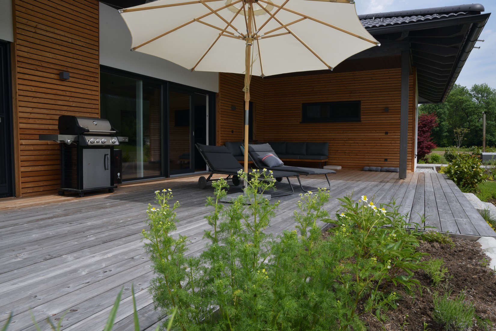 Mit dem Abschluss des Außenprojektes wurde ein natürlicher Raum für Grillabende, entspannte Stunden zu zweit, Kaffeerunden mit Freunden oder einfach nur zum Lesen eines spannenden Buches geschaffen.