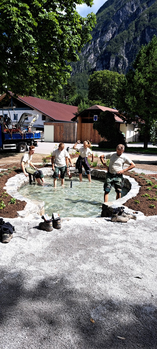 Ein unverbautes Stück Parkwiese bot den optimalen Platz für die Entstehung des neues Wassertretbeckens und Dip. – Ing. Andreas Wieser von „Gärten mit Esprit“ das notwendige Knowhow für die fachmännische Umsetzung.