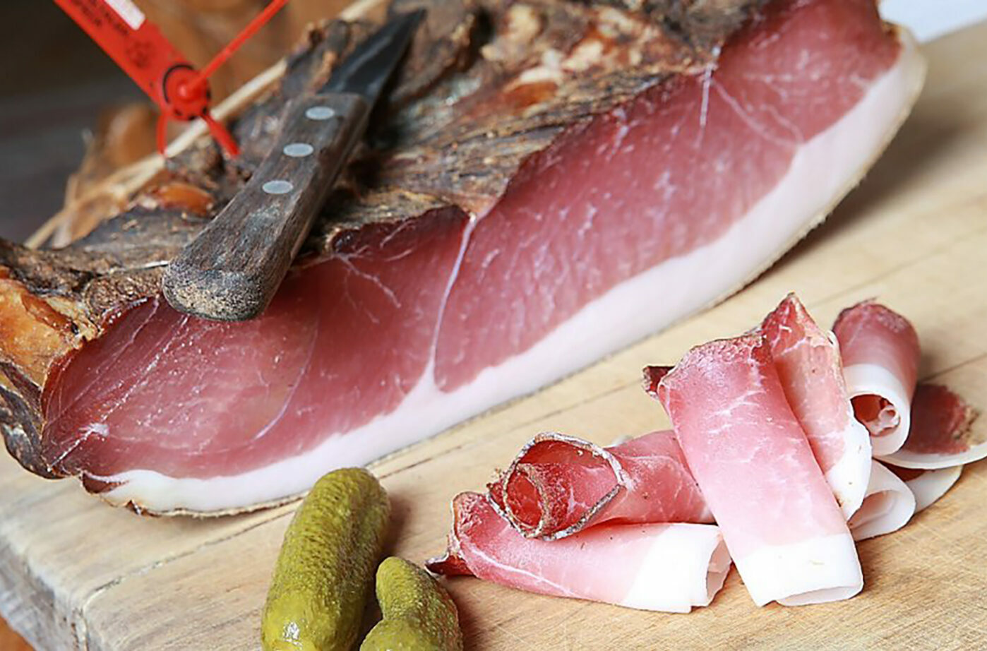 Wer jedoch das EU-geschützte Traditionsprodukt „Gailtaler Speck g.g.A.“ mit seiner goldgelben Außenfarbe, dem intensiv roten Muskelfleisch und dem schneeweißen, auf der Zunge zergehenden Fett klassisch genießen möchte, kann es direkt bei registrierten Betrieben, am Bauernmarkt in Hermagor als auch online in Form von Seiten-, Schinken-, Karree-, Bauch- oder Schulterspeck erwerben.